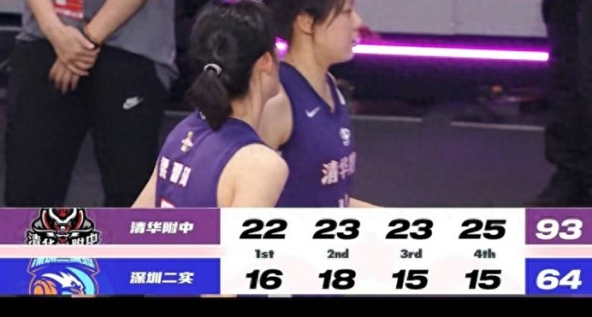 比赛数据方面,清华附中的蒋紫涵贡献15分,庄棋淇得到14分并抢下6个篮板,葛滢拿到15分及9个篮板,许安琪贡献13分,梁雅琦有12分进账同时摘下10个篮板,董一诺则贡献8分及6次助攻。深圳二实方面,叶子云得到13分并抢下6个篮板,朱北辰贡献13分,王慧紫砍下16分,尹靖洁得到7分,王乔荟贡献9分。
