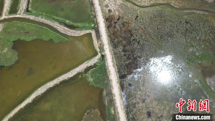 5月27日,位于甘肃张掖市高台县黑河湿地保护区的荒漠与湿地共生共美。该保护区南依祁连山国家级自然保护区,北靠巴丹吉林沙漠,处于河西走廊“蜂腰”地带,是中国西北地区自然保护区网络的重要节点。图为湿地生态景色。(无人机图片) 戴文昌 摄