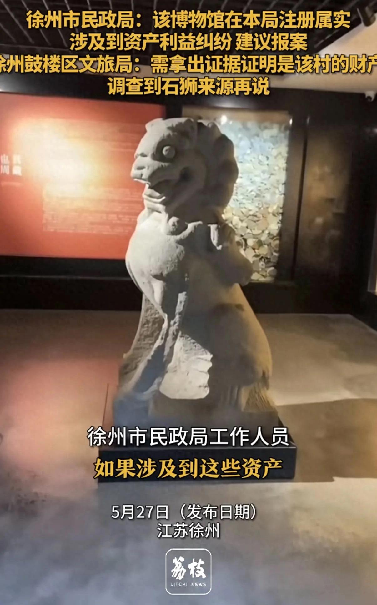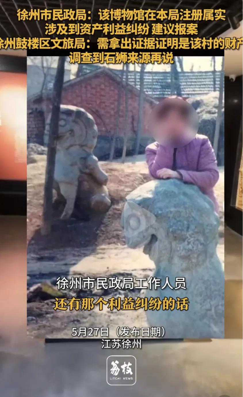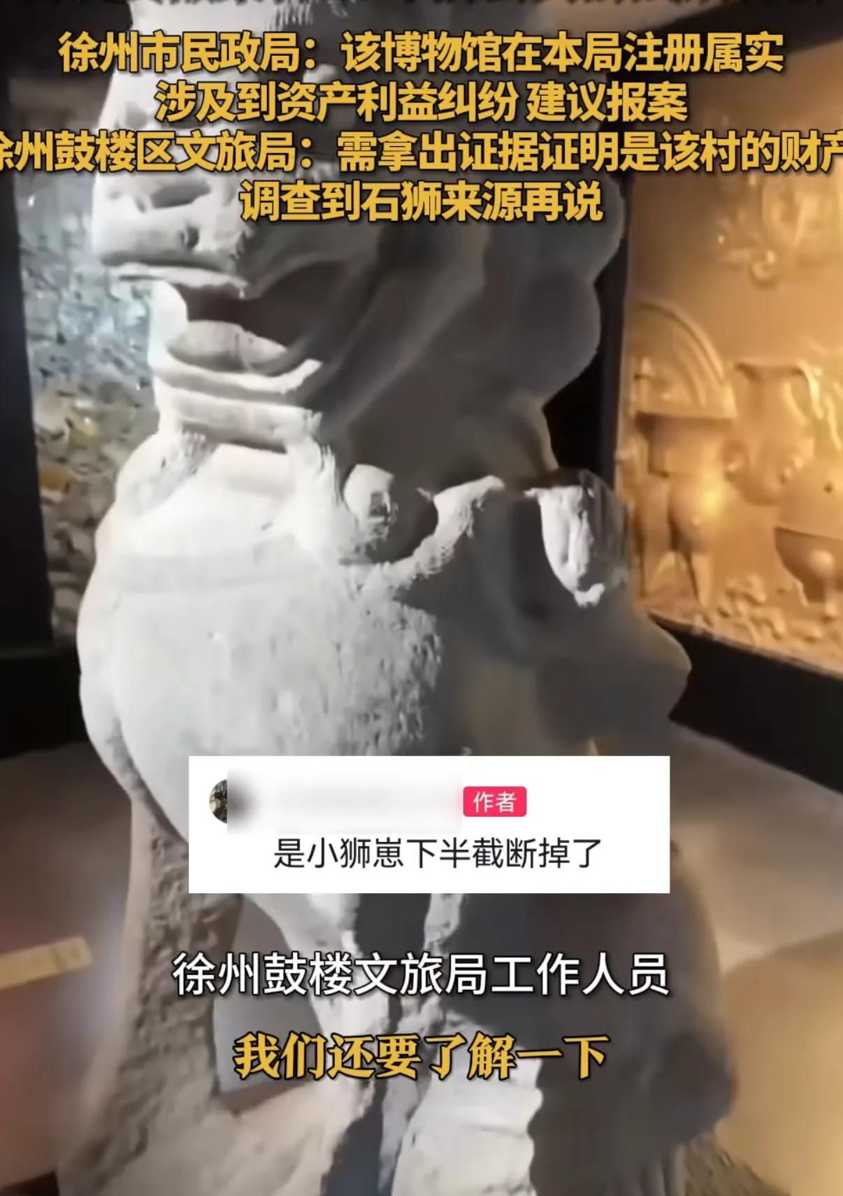 徐州鼓楼区文旅局回应称:拿出证据证明是本村的财产,同时需要调查一下石狮来源再说。