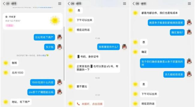 上述人员还向北京商报记者透露,其背后存在专业团队运作,与“特殊渠道人员”合作,能够绕开正规程序调取数据,并强调交易安全,“全程加密传输,不会留下痕迹”。在价格上,个人基础信息查询报价1500-3000元不等,涉及全家户籍等深度信息则需5000元以上。