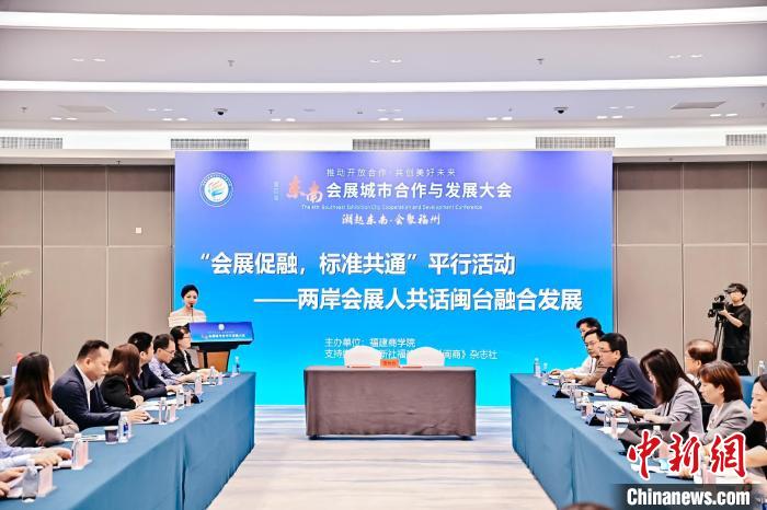 中新网福州5月30日电 (叶艺琳)第四届东南会展城市合作与发展大会“会展促融 标准共通”平行论坛29日下午在福建福州举办。来自两岸会展领域的专家学者、行业代表近50人齐聚一堂,围绕闽台会展融合发展中的标准共通、知识产权保护、科技赋能等核心议题进行交流探讨,探索两岸会展业融合发展新路径。