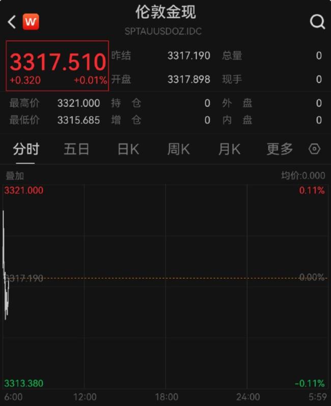 然而,早间金价再度下跌,现货黄金微跌0.02%,报3316.6美元/盎司;COMEX黄金期货则下跌0.17%,报3338.3美元/盎司。