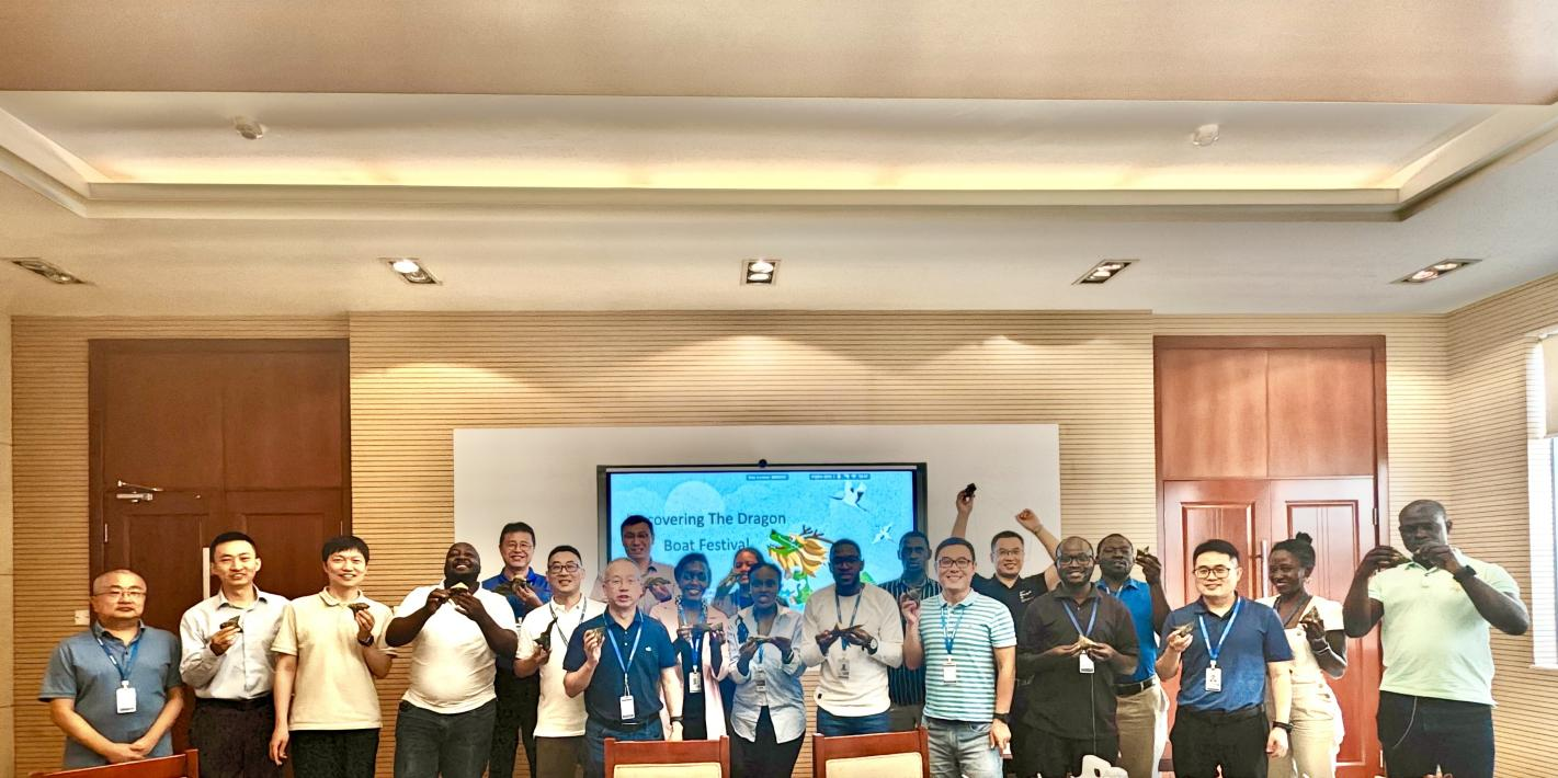 在“Lunch & Learn” 端午节文化课堂上,中方员工王帅向中乌同事介绍了端午节由来、传统习俗、当代传承,让本地雇员切身感受到中华古老文化的独特魅力。过端午,必然少不了吃粽子这个“重头戏”。当清香的粽叶香气在活动现场弥漫开来,一个个裹着翡翠外衣的粽子整齐排列,瞬间牢牢抓住了本地员工们好奇的目光。一位乌干达员工兴奋地说道:“这是我第一次吃粽子!它独特的制作方法和可爱的形状太有意思了,味道也棒极!”
