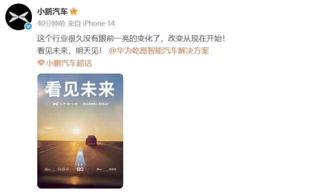 小鹏华为预告战略合作 发布会将官宣合作