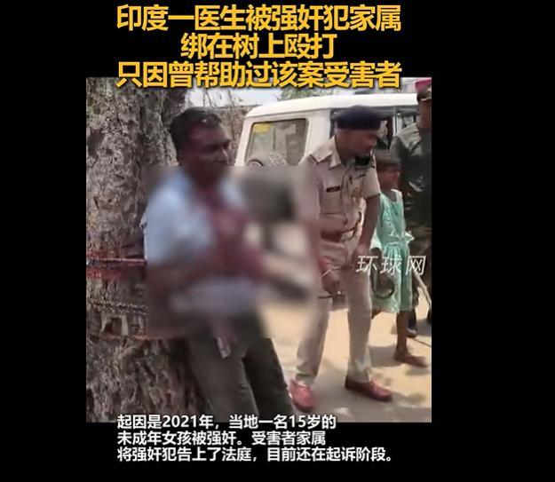 印一医生被强奸犯家属绑树上殴打 因帮助受害者遭报复。近日,在印度比哈尔邦加雅县,乡村医生吉滕德拉·亚达夫在强奸受害者家中诊治时遭到强奸犯家属的暴力袭击。2021年,当地一名15岁的未成年女孩被强奸,受害者家属将强奸犯告上法庭,案件仍在审理中。强奸犯家属试图向受害者家属施压,要求他们撤诉。由于吉滕德拉·亚达夫曾帮助过受害者,他成为了报复的目标。在袭击过程中,受害者家属的女孩大声呼喊求助,最终警察赶到现场解救了医生,袭击者则趁机逃跑。