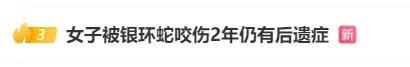 6日,微博话题#女子被银环蛇咬伤2年仍有后遗症#冲上热搜,引发广泛关注。该女子详细回忆了当时被咬后的处理情况:两年前她在云南普洱旅游时,在酒店房间里发现自己被毒蛇咬伤。