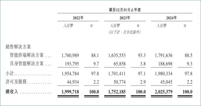 另外,更令市场担心的是奕斯伟计算对于单一客户的高度依赖。招股书透露,在公司前五大客户中,来自于客户A(在中国注册成立的A股上市公司,物联网智能交互产品和专业服务供应商)的三年收入占比,分别达到了78.9%、82.1%和76.8%。这也导致智能终端业务占据绝对的主导地位,具身智能板块亟待加强。