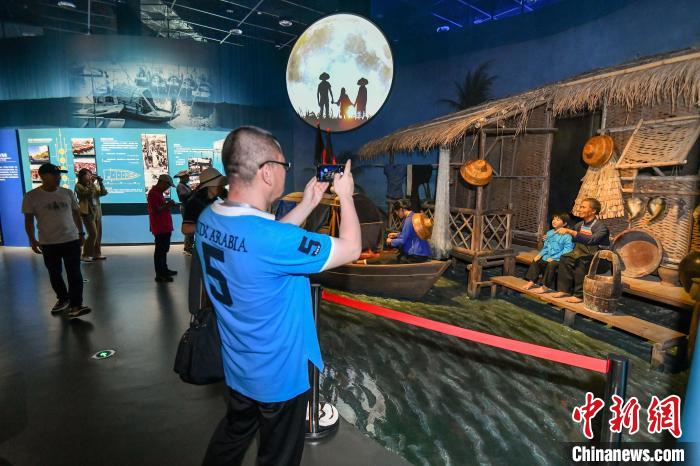 6月8日,海南陵水,海南疍家博物馆展出的帆船、疍家渔排等吸引参观者。中新社记者 骆云飞 摄