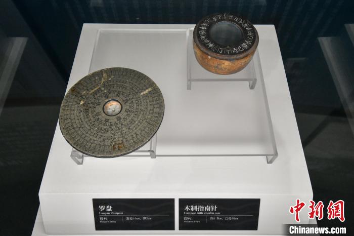 6月8日,海南陵水,海南疍家博物馆展出的罗盘、木制指南针。中新社记者 骆云飞 摄