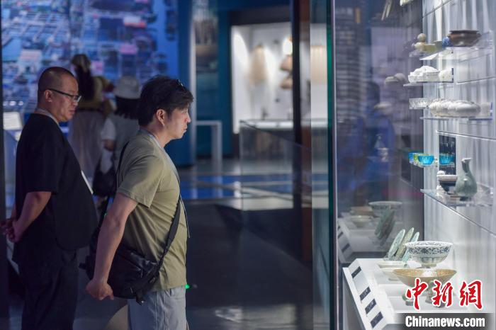 6月8日,海南陵水,在海南疍家博物馆展出的海捞瓷等出水文物吸引参观者。中新社记者 骆云飞 摄