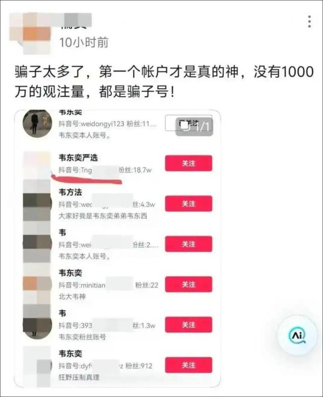 有账号起名韦东奕严选带货 碰瓷账号引争议