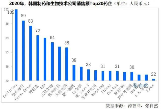以2020年韩国Top20制药企业为例,营收位于20~100亿元(人民币)之间。