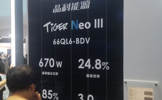晶科能源副总裁钱晶对此又进一步表示,不是所有的BC都是高效组件,也不是所有的TOPCon都叫Tiger Neo 3.0,未来不是TOPCon和BC在的对比,而是以功率档,如650W作为分水岭,650W以上的组件,不管是TOPCon或者BC,在未来12个月内都是属于高性能组件。