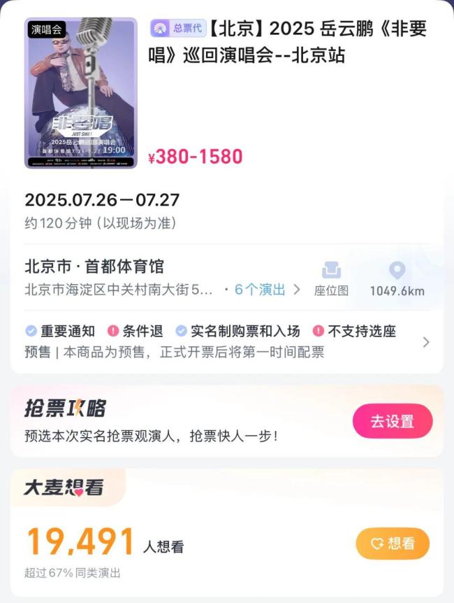 近日,岳云鹏宣布将举办个人巡回演唱会,定名为“非要唱”。首站北京站门票于6月12日10点18分开抢,最高票价为1580元,目前已有近2万人表示感兴趣。