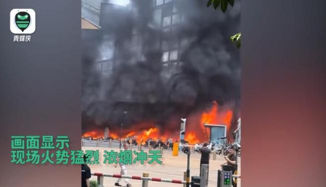 6月11日,重庆市九龙坡区石桥铺电脑城附近发生火灾。多段网传视频显示,一栋高层建筑底部被浓烟包围,一层临街位置有明火不断燃烧,可见的燃烧物中有多辆停放在路边的电瓶车与摩托车。
