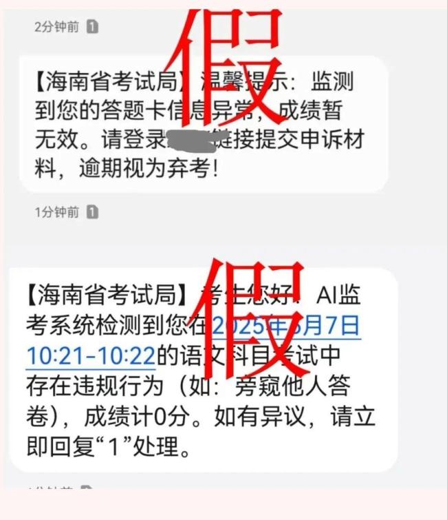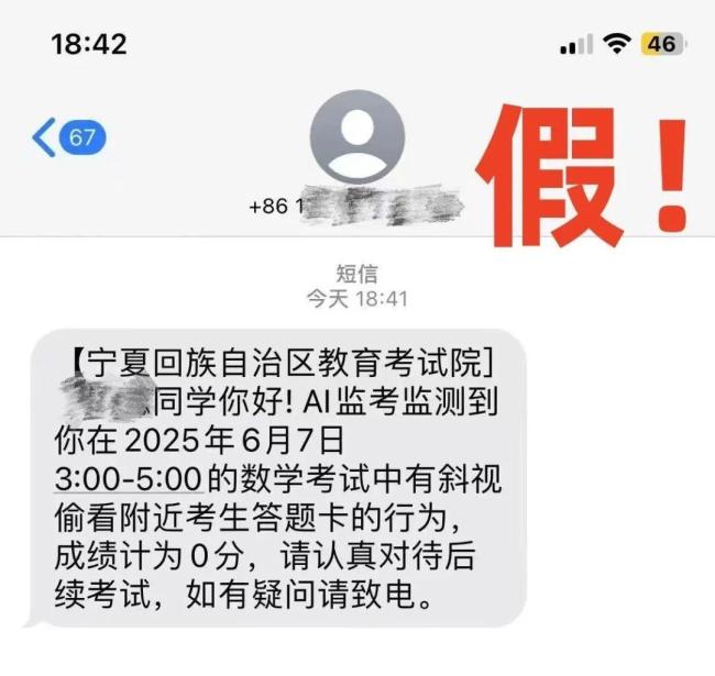 近日,宁夏部分考生收到了声称来自“宁夏教育考试院”的短信,称他们在考试中被AI监考发现有违规行为,成绩记为0分。对此,多地官方已发出提醒,教育主管部门和招考机构绝不会向考生发送此类信息,提醒考生及家长注意保管好个人信息,谨防上当受骗。