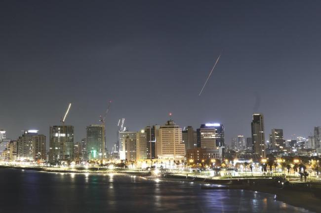 6月19日凌晨,在以色列特拉维夫,防空系统发射拦截弹拦截来袭的导弹。18日晚,伊朗宣布对以色列发起“真实承诺-3”行动的第十二轮打击,并向以色列发射“泥石”弹道导弹。