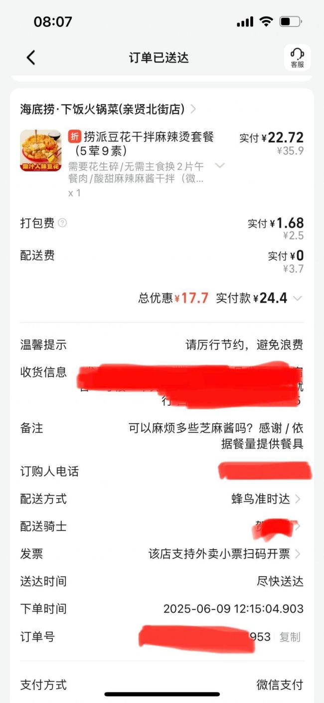 6月16日,海底捞相关工作人员回应称,经属地监管部门实地调查,花生芝麻调味酱实际为6月9日当日分装,产品资质、储存及保质期均符合要求。标签上的日期失误系员工操作时误触键盘所致,共影响了7笔外卖订单。海底捞对这一失误给顾客带来的困扰表示歉意,并已安排专人联合外送平台对受影响的顾客进行回访沟通。此外,海底捞已启动标签系统升级,通过技术与流程的优化杜绝类似失误,并提升员工操作的便捷性。