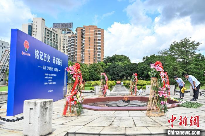 图为礼兵护送花篮摆放在英雄花火炬旁。中新社记者 陈骥旻 摄
