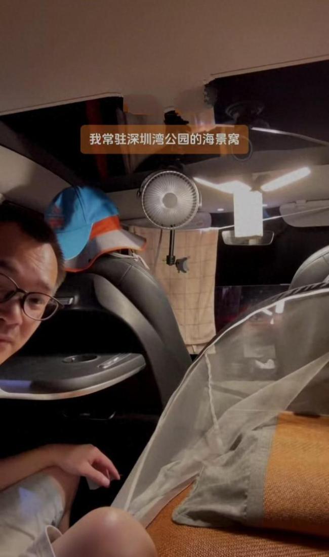 张运来是广东阳江人,在深圳打工近六年。今年四月,他的露营生活曾登上热搜。最近,他又因为不租房而选择住在车里再次受到关注。张运来身高一米七多,戴着眼镜,虽然消瘦但精神很好。初到深圳时,他也像大多数人一样租了个单间,每月租金2000元。工作两年后,他买了一辆车,方便周末回家与家人团聚。