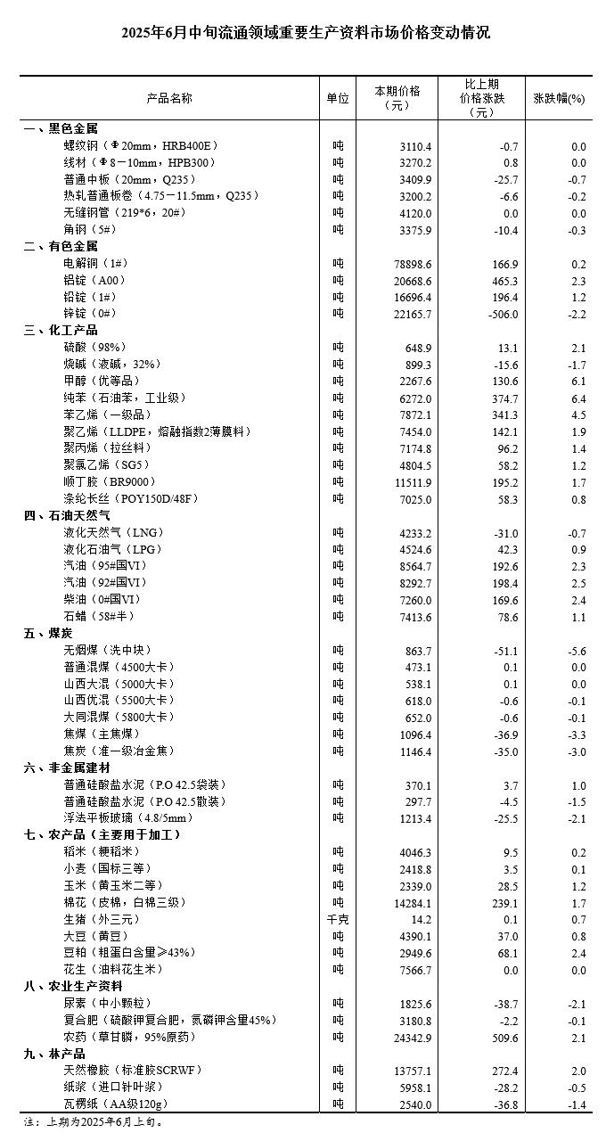 中新网6月24日电 据国家统计局网站消息,据对全国流通领域9大类50种重要生产资料市场价格的监测显示,2025年6月中旬与6月上旬相比,27种产品价格上涨,17种下降,6种持平。图片来源:国家统计局网站截图