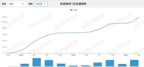 极海品牌监测的数据显示,库迪咖啡门店规模在经历了2023年的快速增长后,进入了两次平缓期;而两次新增长点出现的时间,分别对应库迪推出“店中店”和便利店计划的时间。