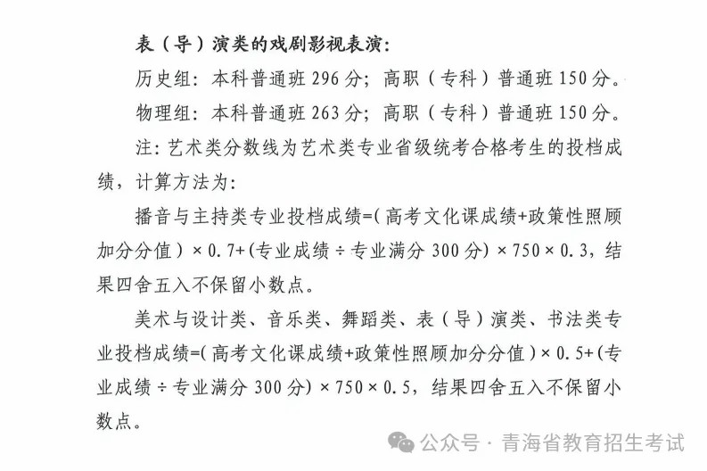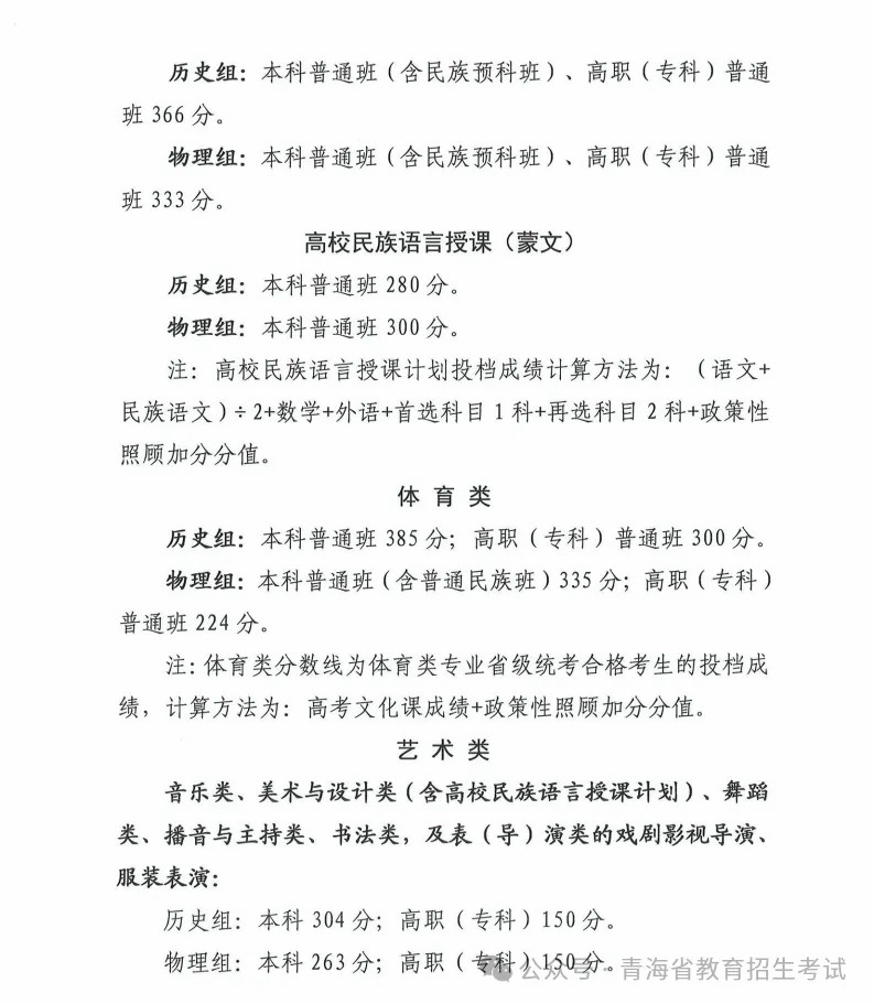 2025年普通高等学校在青海招生录取控制分数线公布