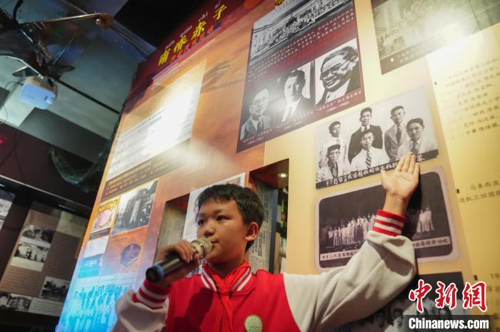 图为6月23日,侨光小学的学生讲解员在校史馆向低年级同学讲述南侨机工历史。中新社记者 刘冉阳 摄