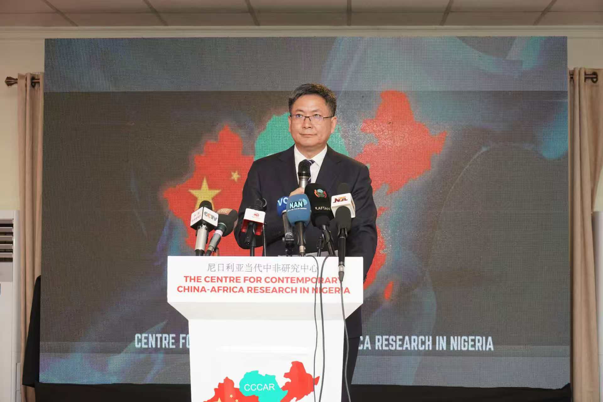 中国驻尼日利亚大使于敦海致辞。 陈慧玲摄