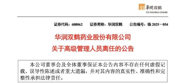 6月25日,华润双鹤发布公告,姚东晗因工作安排原因辞去副总裁职务,后续将担任华润双鹤党委专职副书记。
