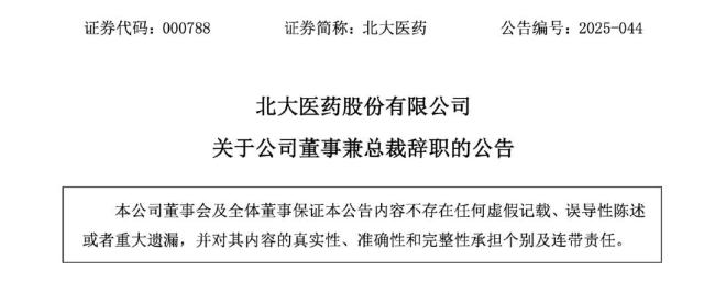 北大医药总裁辞职