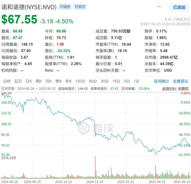 相比之下,诺和诺德略显失意,Wegovy的长时间生产短缺以及GLP-1产品布局战略的差异限制了其在糖尿病和肥胖领域的扩张。自2024年6月以来,诺和诺德的股价已经跌去了一半。