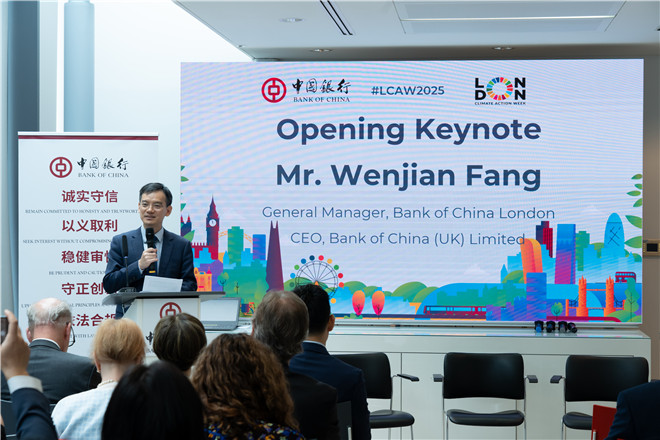 英国中国商会会长、中国银行伦敦分行行长方文建在开幕致辞中表示,绿色金融及可持续发展已成为全球高质量发展与金融体系转型的关键方向,中国银行将继续以开放与务实的态度,积极参与全球可持续发展领域的交流与合作。