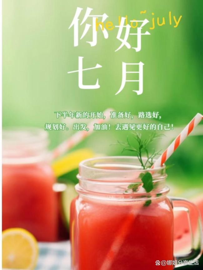 七月,热烈开场!骄阳似火,激情如歌,新一月的篇章等你来书写,一起开启夏日狂欢模式。跟六月的自己道声辛苦了,对七月的自己说句加油。每个月份都是新的机会,别辜负时光,别怠慢自己。