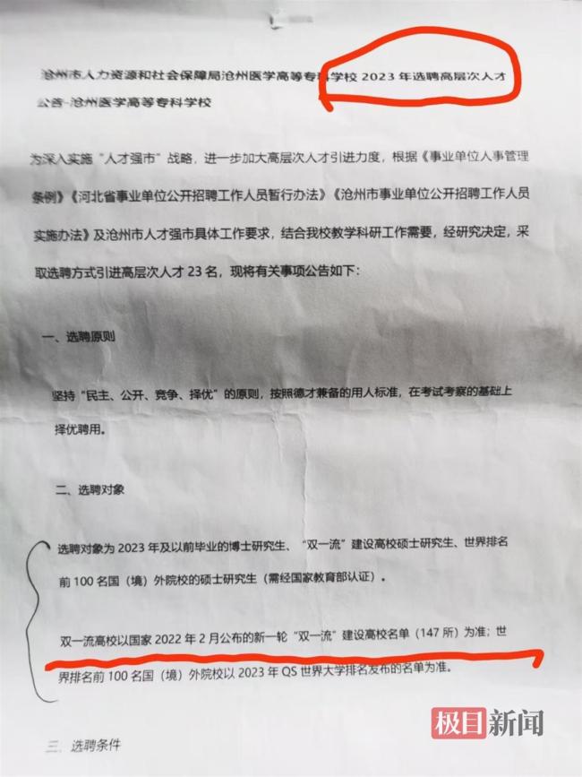 高校引进高层次人才 第2名举报第1名 家长质疑招聘条件