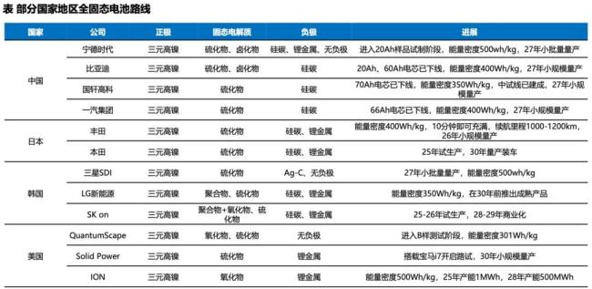 目前来看,国内宁德时代、比亚迪、华为,日本的丰田、松下,韩国的三星SDI、 LG新能源、SK on,美国的Solid Power等均重点布局硫化物体系。