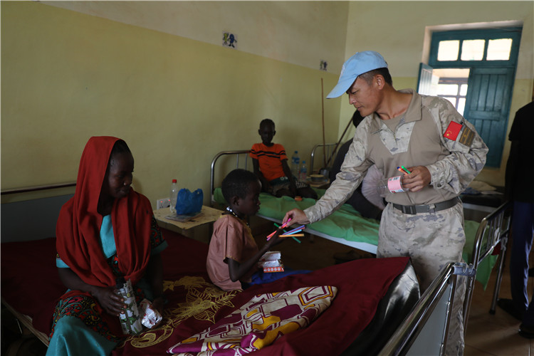 瓦乌市教学医院医生勒博斯·莱恩斯表示,该院有许多传染病患者及受战乱冲突而流离失所的人员,他们急切需要人道主义援助,非常感谢中国维和部队为当地医院民众提供的援助服务。