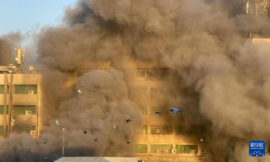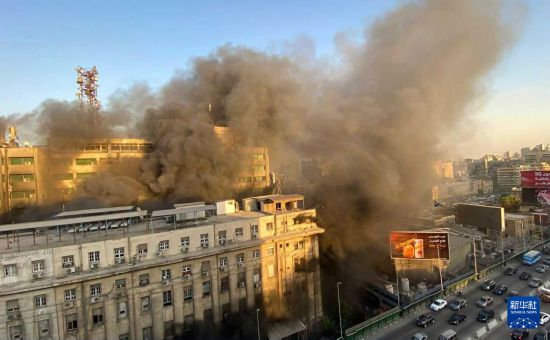 7月7日,在埃及首都开罗,一座电信大楼发生火灾冒出浓烟。新华社发(伊斯梅尔·戈马摄)