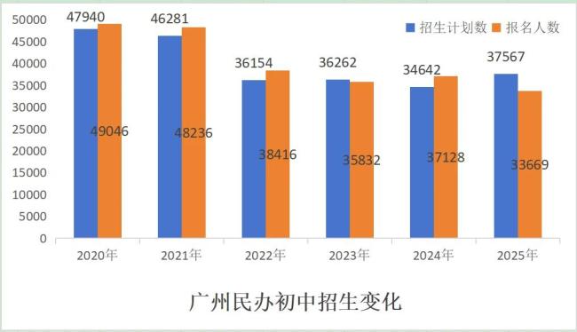 6月底,广州11区民办初中电脑摇号派位结束。数据显示,全市33669人报名民办初中,160所民办初中(校区)提供37567个学位,97所学校报名人数超过招生计划数进行电脑摇号派位。相比2024年,招生学校(校区)增加4个,学位数量增加2925个,报名人数减少3459个。2024年,全市156所民办初中总招生计划34642个,填报志愿的人数为37128人。