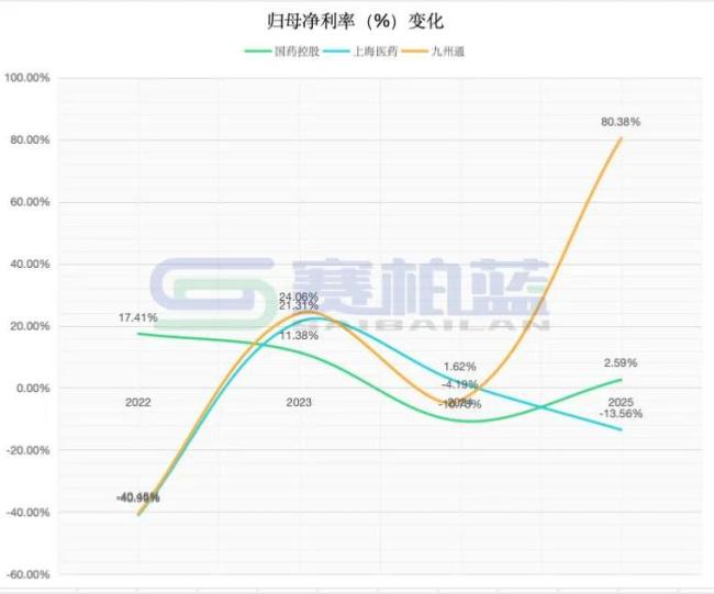 上海医药2025年一季度归母净利润为13.33亿元,同比-13.56%,这也是近三年(2023-2025年)首次下降。