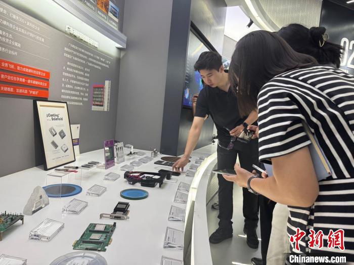图为记者在展厅内了解产品。杨英琦 摄