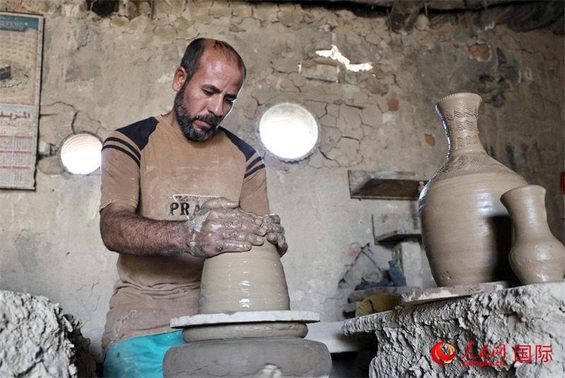 萨法阿·卡瓦兹正在制作陶器。人民网 伊纳斯·易卜拉欣摄