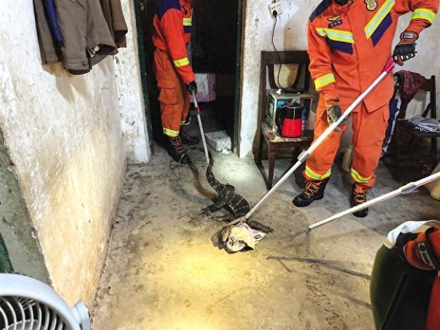圆鼻巨蜥闯入民房被误认鳄鱼,极危的国家一级保护动物,游泳爬树样样精通 消防救援人员成功捕获