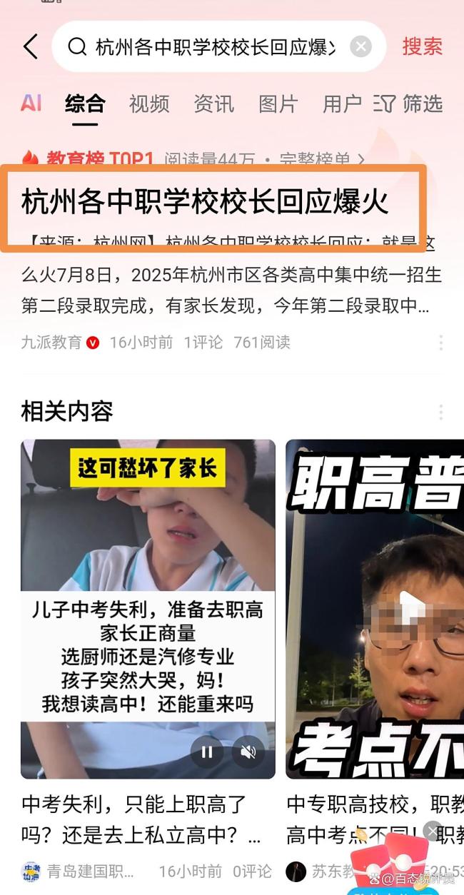 杭州各中职学校校长回应爆火 职业教育备受青睐!杭州中职学校招生情况受到广泛关注。最近,杭州市区各类高中集中统一招生第二段录取工作完成。尽管今年普高招生计划有所增加,且民办高中分数线普遍下降,部分学校未录满,但中职学校的招生却异常火爆。