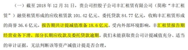 2018年,丰汇租赁的业绩承诺期一过便开始“大变脸”,导致金洲慈航当年计提相关减值准备高达18.6亿元!这一诡异“变脸”也立刻引来了监管层的关注。