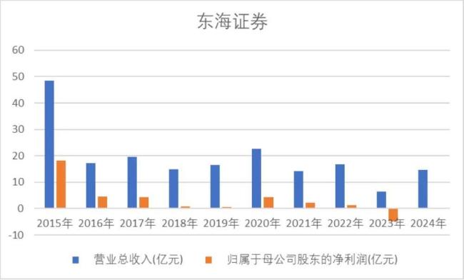 纵观东海证券近年业绩,可谓大起大落。