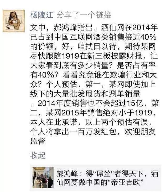 这是郝鸿峰在2015年酒仙网挂牌仪式上的豪言,还更像是一种承诺。说是承诺,因为人们相信:这或许真能实现。