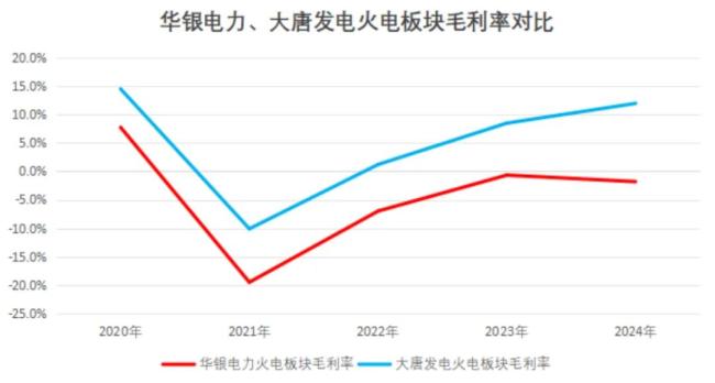 掰开揉碎来看,2021-2024年,公司的火电业务一直处于亏损当中,以2024年为例,华银电力火电板块的毛利率为-1.8%。
