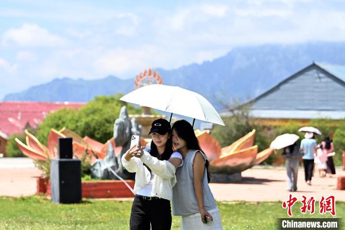 图为7月13日,游客在舟曲拉尕山上拍照留念。九美旦增 摄