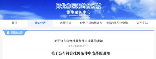 7月11日,河北省医用药品器械集中采购中心发布《关于公布符合挂网条件的中成药通知》,将符合河北中成药挂网规则的42个中成药产品进行挂网,包括逍遥丸(浓缩丸)、小儿柴桂退热颗粒、壮骨止痛胶囊等。赛柏蓝梳理发现,今年来,河北省已经至少公布过13批类似的通知,大批常用中成药被纳入。